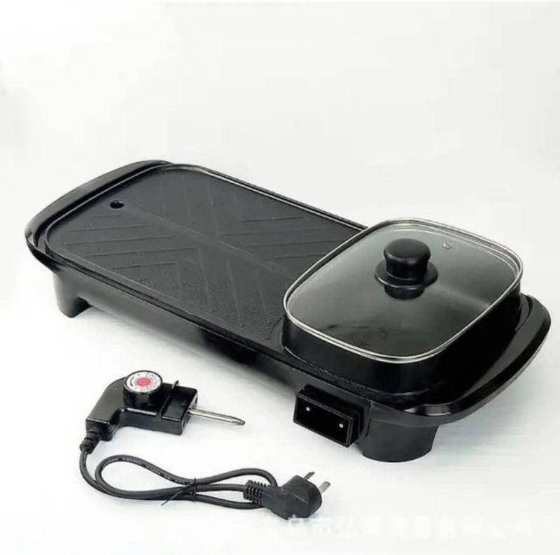 Parrilla eléctrica 2 en 1 con olla Shabu Shabu. Barbacoa coreana Teppanyaki multifuncional para interiores con capacidad para 2