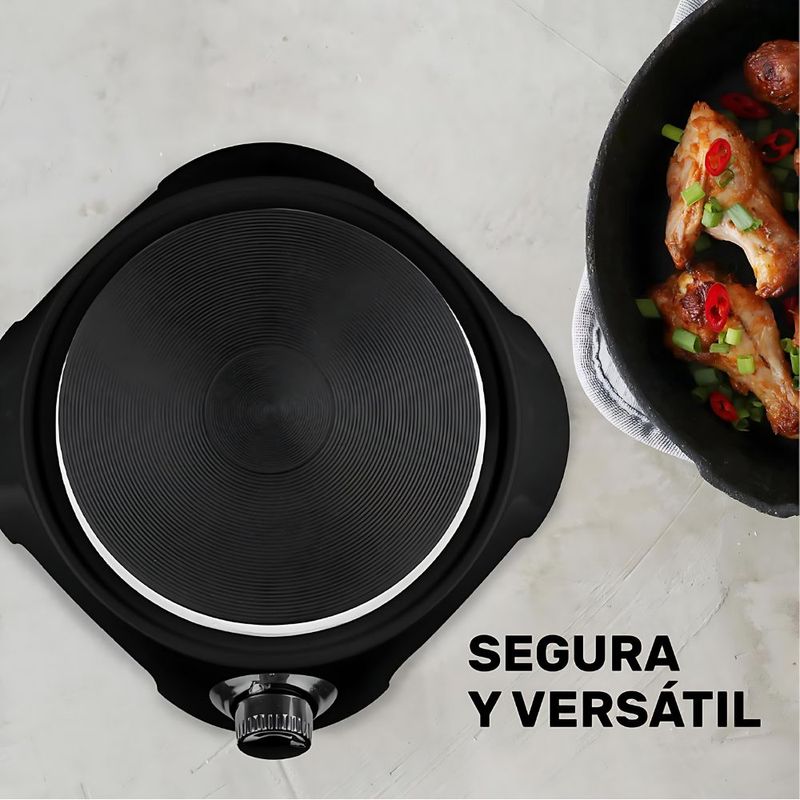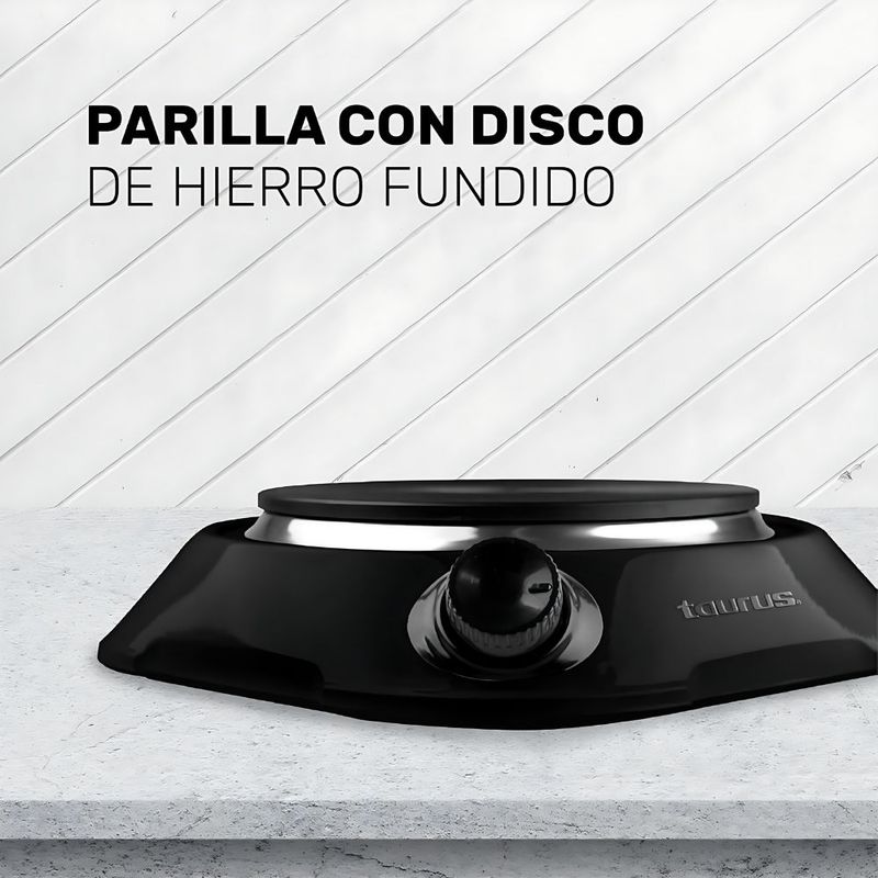 Línea blancaCocinaParrillasParrilla eléctrica Taurus Helios con termostato, negro, parilla con disco de hierro fundido, compacta