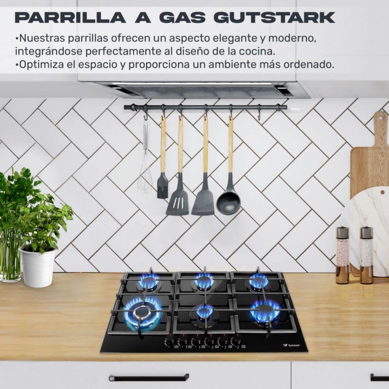 Parrilla Empotrable 6 Quemadores Cristal Templado Acero Inox Gutstark