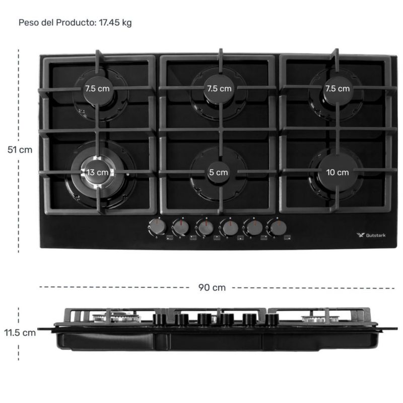 Línea blancaCocinaParrillasParrilla Empotrable 6 Quemadores Cristal Templado Acero Inox Gutstark