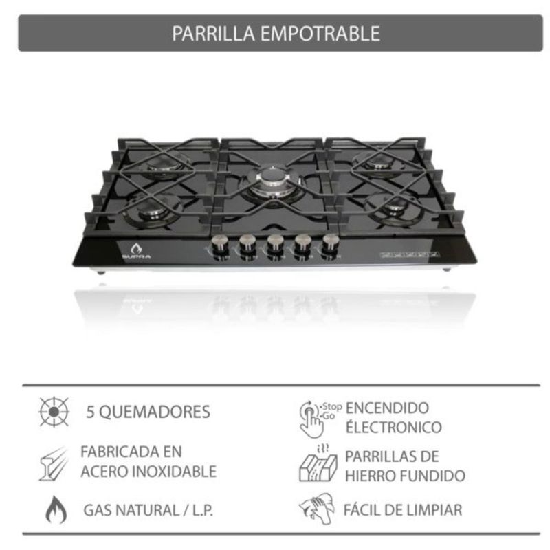 Línea blancaCocinaParrillasParrilla Empotrable a Gas LP Supra 5Q-TG-87 Negra