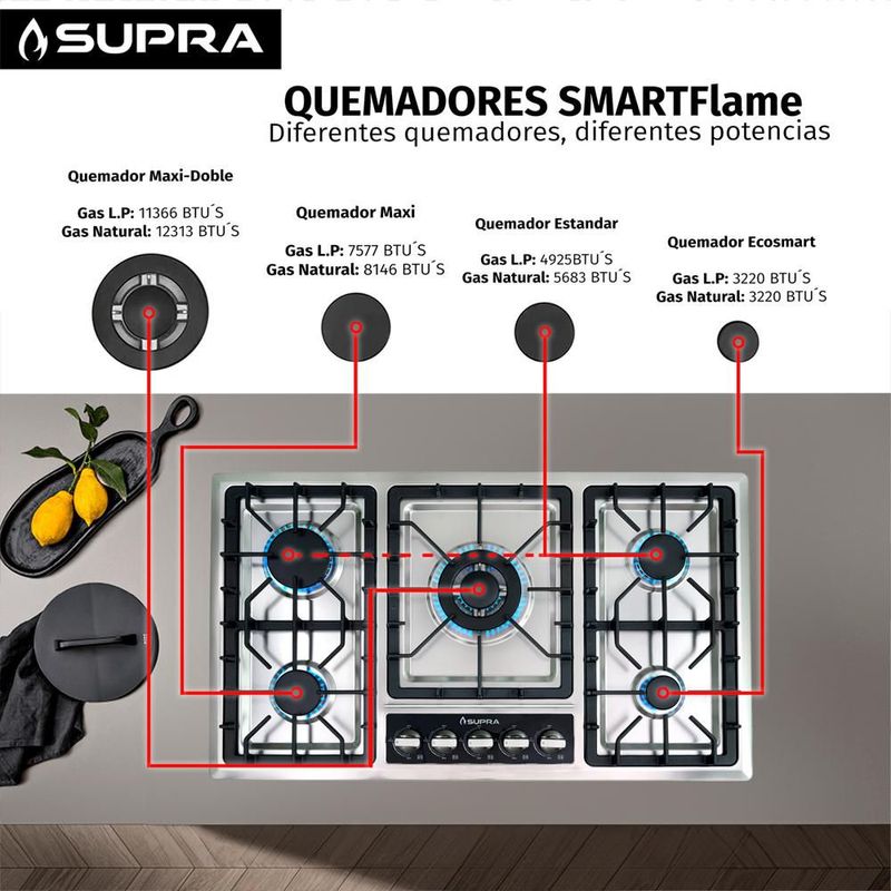 Parrilla empotrable de gas con 5 quemadores 5Q-ES-87 de 87cm