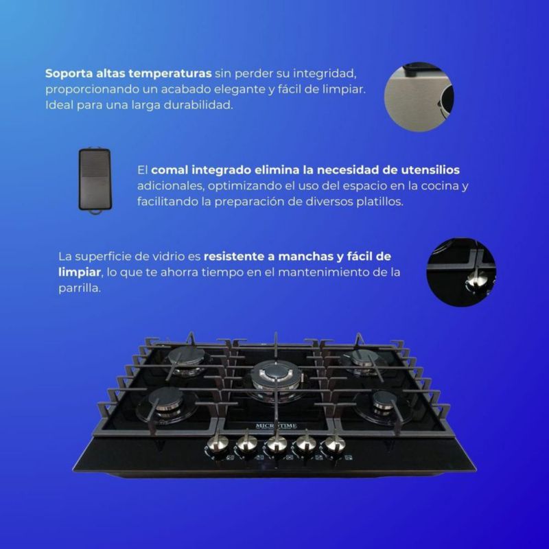 Parrilla Estufa 5 Quemadores Vidrio Templado con Comal Microtime