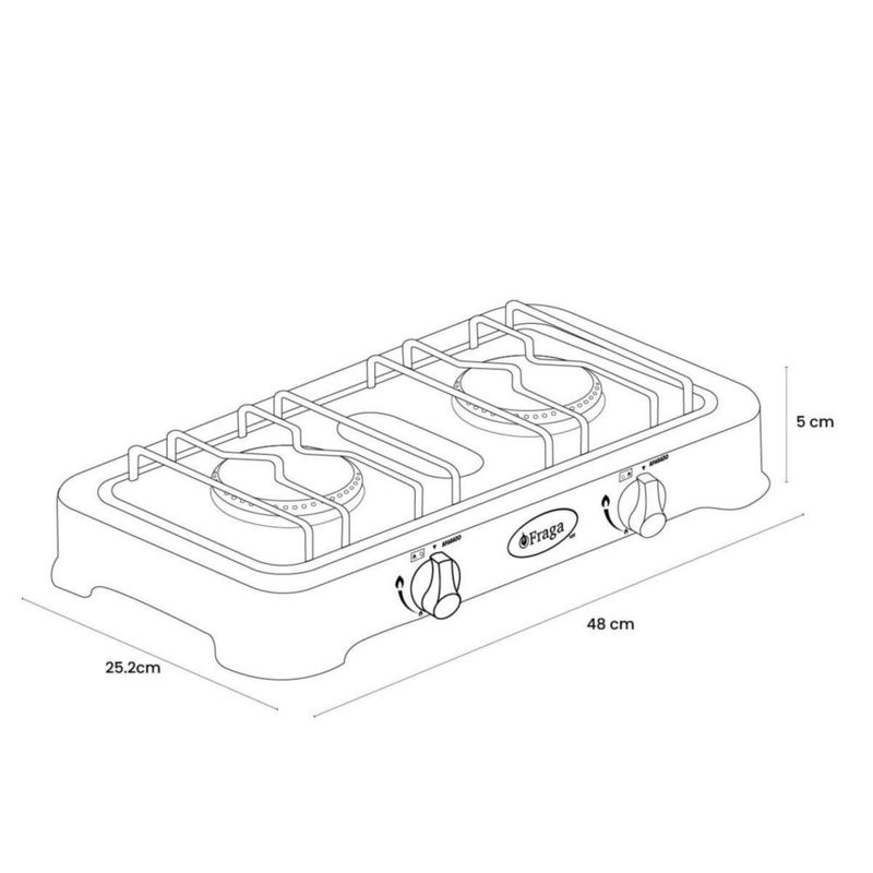 Línea blancaCocinaParrillasParrilla Fraga 2 quemadores de mesa P800 Porcelanizada en color Verde.