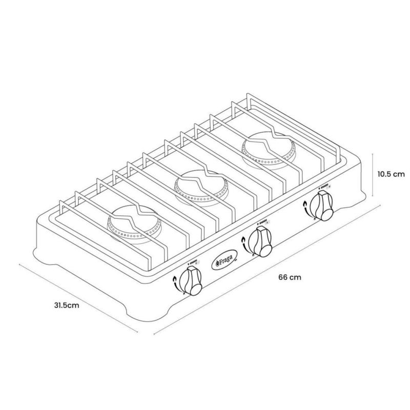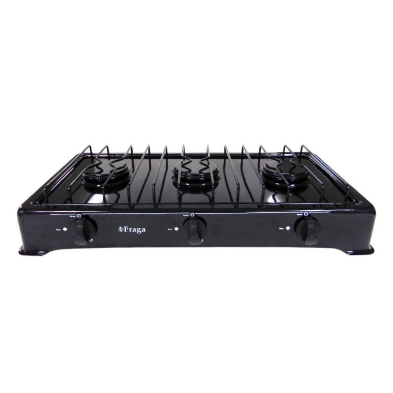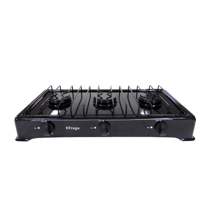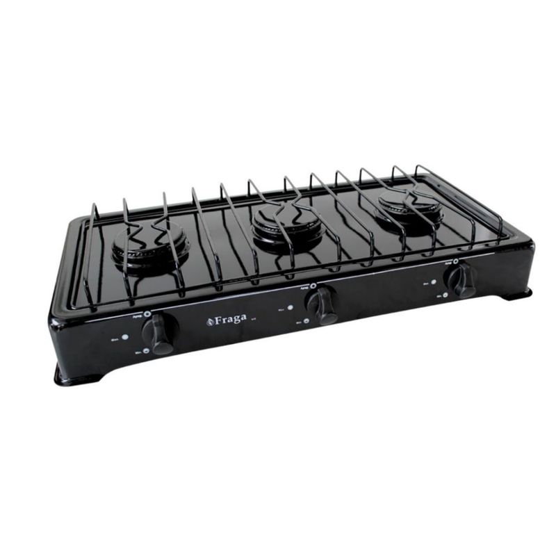 Parrilla Fraga 3 quemadores de mesa P803 Porcelanizada en color Negro.