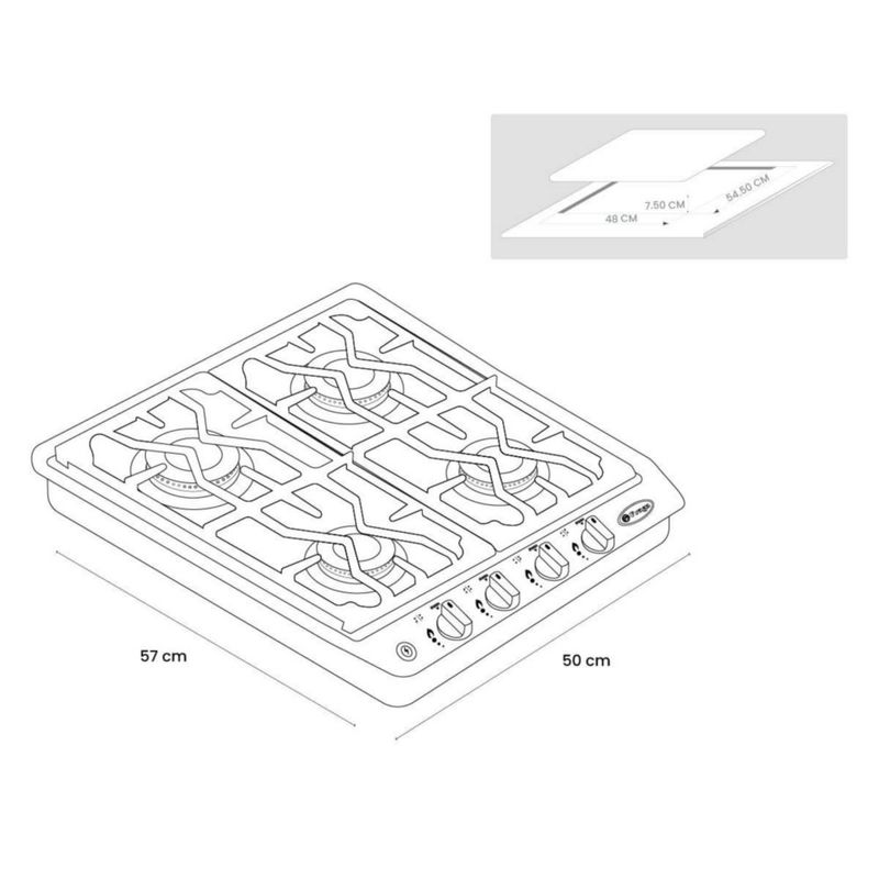Línea blancaCocinaParrillasParrilla Fraga 4 quemadores de empotrar PD180 De Acero Inoxidable