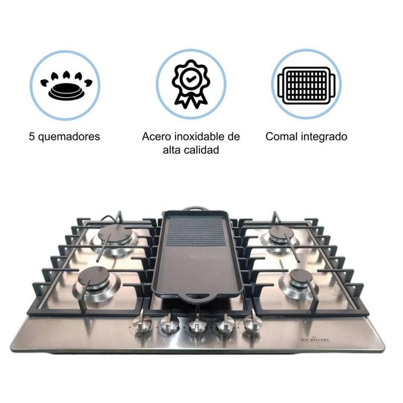 Línea blancaCocinaParrillasParrilla Gas 5 quemadores acero inoxidable comal incluido Shorbull