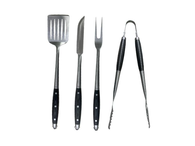 HogarCocinaAsadores y AccesoriosParrilla Set de 4 - Tenedor, Chuchillo, Espátula, Pinza para Cocina con Anillo para Colgar