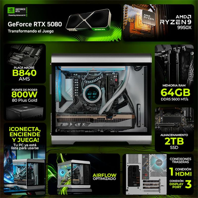 CómputoDe escritorioDesktop GamingPc gamer dxt rtx 5080 ryzen 9 64gb ddr5 ssd 2tb monitor 34