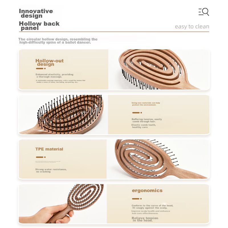 Belleza y Cuidado PersonalCuidado del cabelloCepillosPeine masajeador Yao diseño hueco vetas madera ovalado