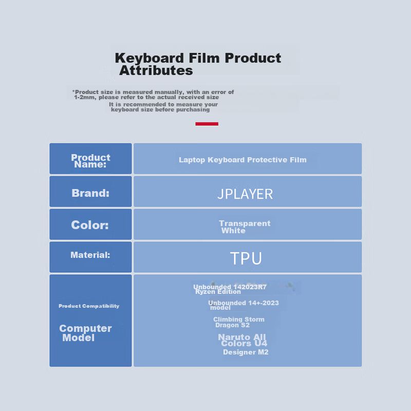 CómputoTablets y AccesoriosAccesoriosPelícula Protectora De Teclado Para Laptop Jplayer R7 Transparente