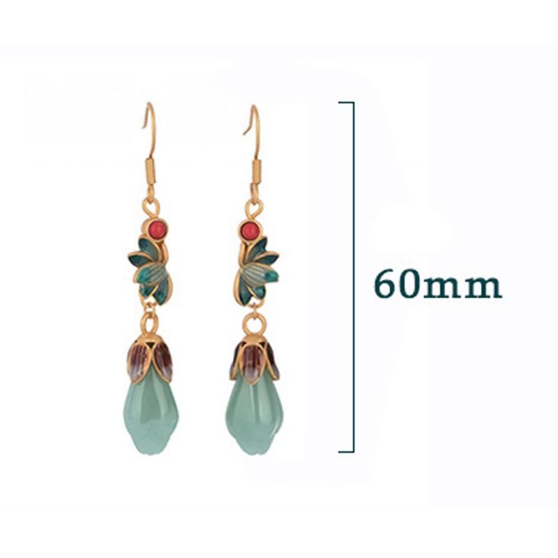 Pendientes de flor de magnolia esmaltados de estilo chino clásico prara mujer HOGAWAY