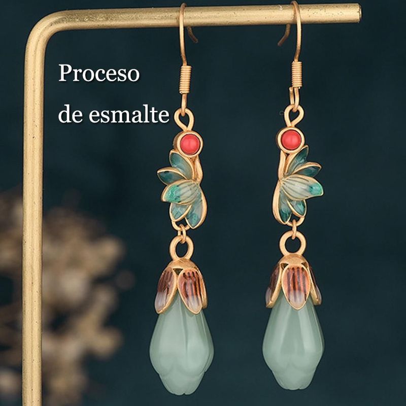 Moda y accesoriosJoyeríaAretesPendientes de flor de magnolia esmaltados de estilo chino clásico prara mujer HOGAWAY