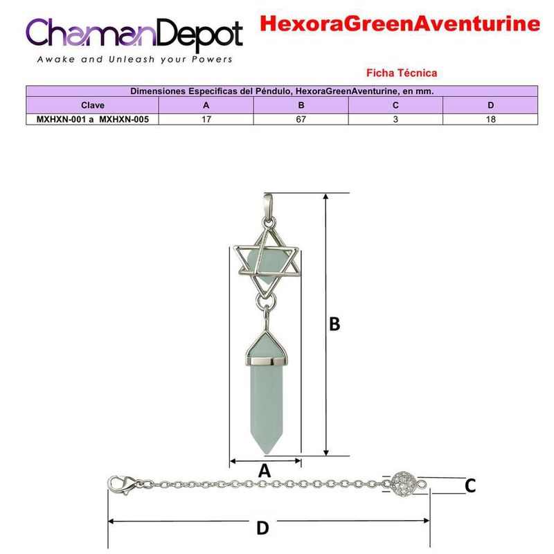 Pendulo aventurina verde HexoraGreenAventurine MXHXN-004 Pendulo chakras alineacion