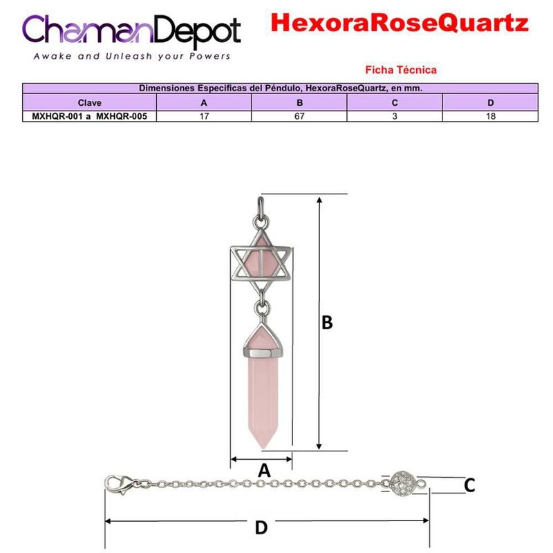 Péndulo energético MXHQR-002 HexoraRoseQuartz Cuarzo para el amor