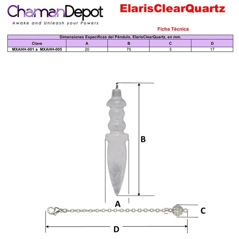 Péndulo luz cuarzo natural MXAHH-004 ElarisClearQuartz Péndulo poder del cuarzo