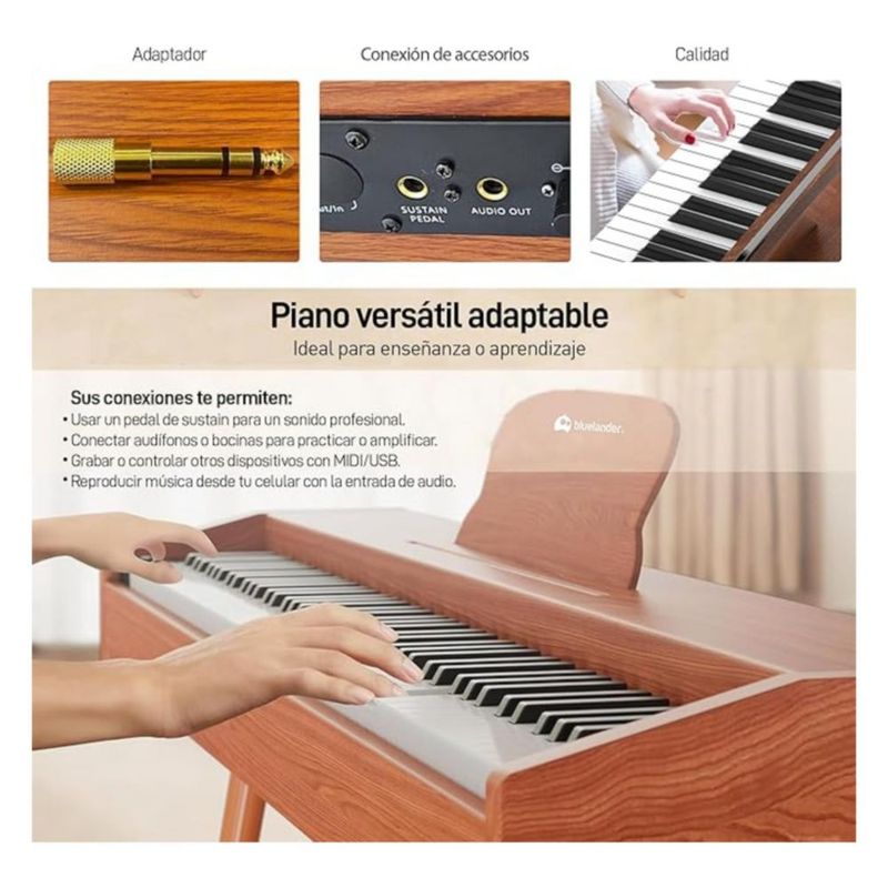 Piano Bluelander de 3 pedales y 88 Teclas. Incluye Banco