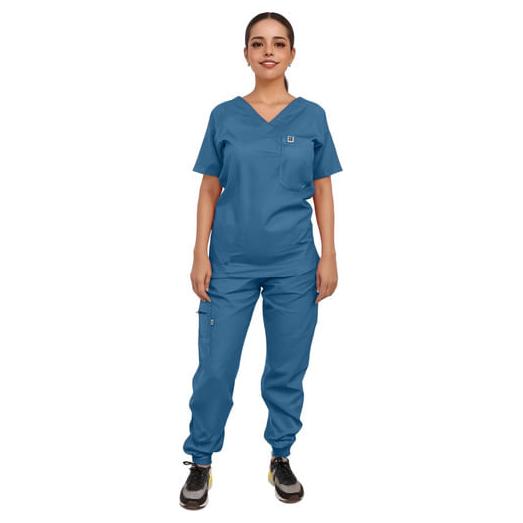 Pijama Quirurgica Uniforme Medico Jogger Mujer Algodon Azul
