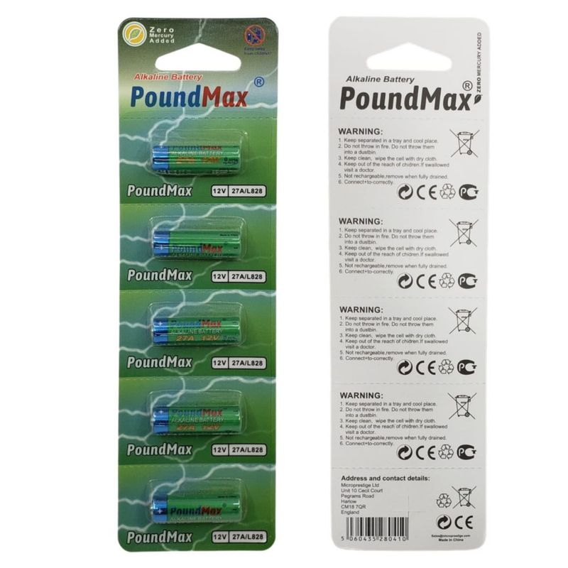Pila Alcalina PoundMax 27A L828 12V Paquete de 5