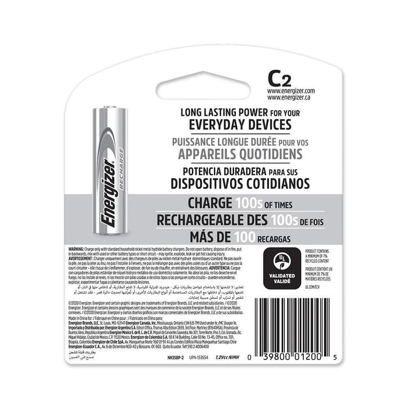 Pila energizer c recargable blister 12 unidades 1.2v