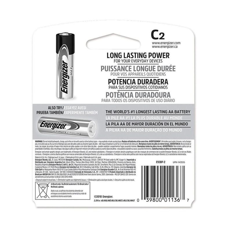 Pila energizer max alcalina c con 2 e93 gorda chica