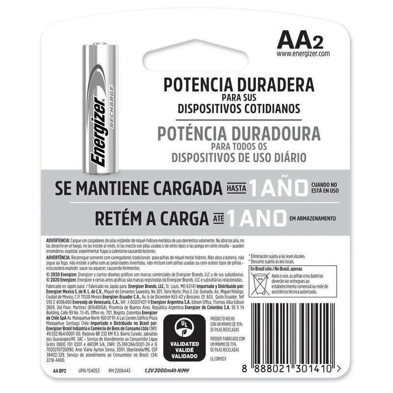 ElectrónicaAccesorios para electrónicaPilas y CargadoresPilas recargables energizer aa 2000 mah blister 12 unidades