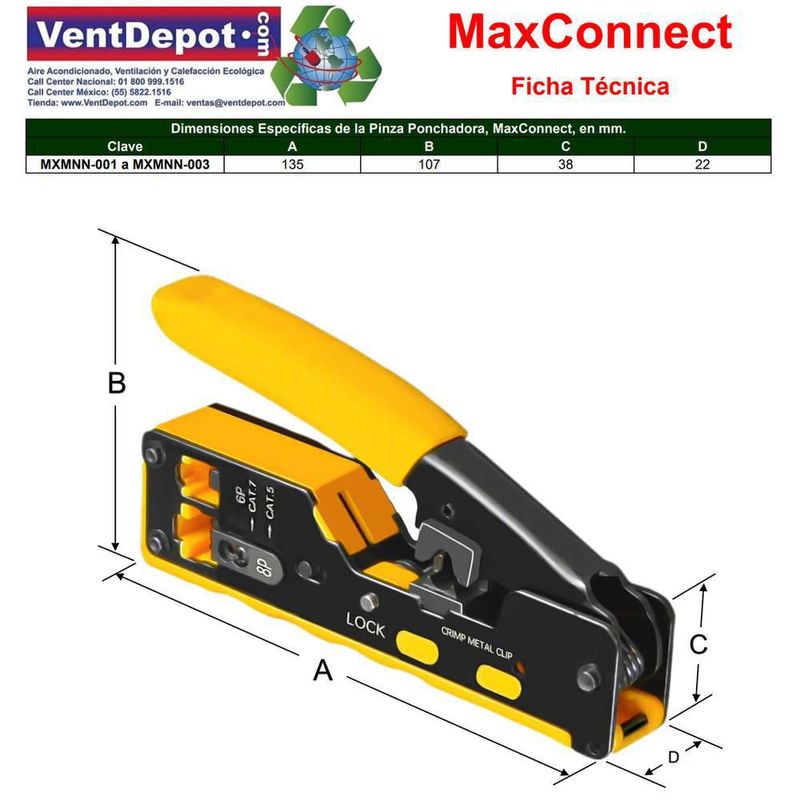 HerramientasManualesPinzasPinzas Crimpadoras MXMNN-001 MaxConnect Pinzas para Ponchar