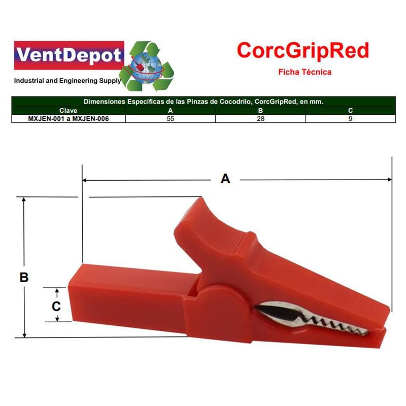 HerramientasManualesPinzasPinzas de cocodrilo eléctricas MXJEN-001 CrocGripRed Clips de cocodrilo eléctricos