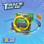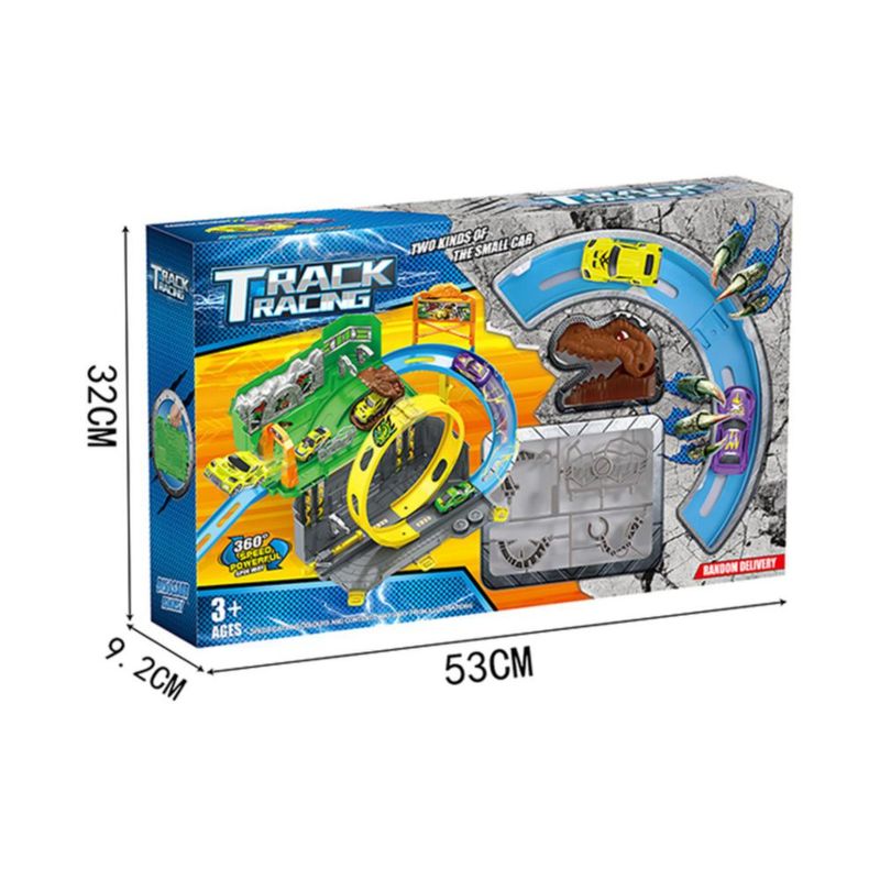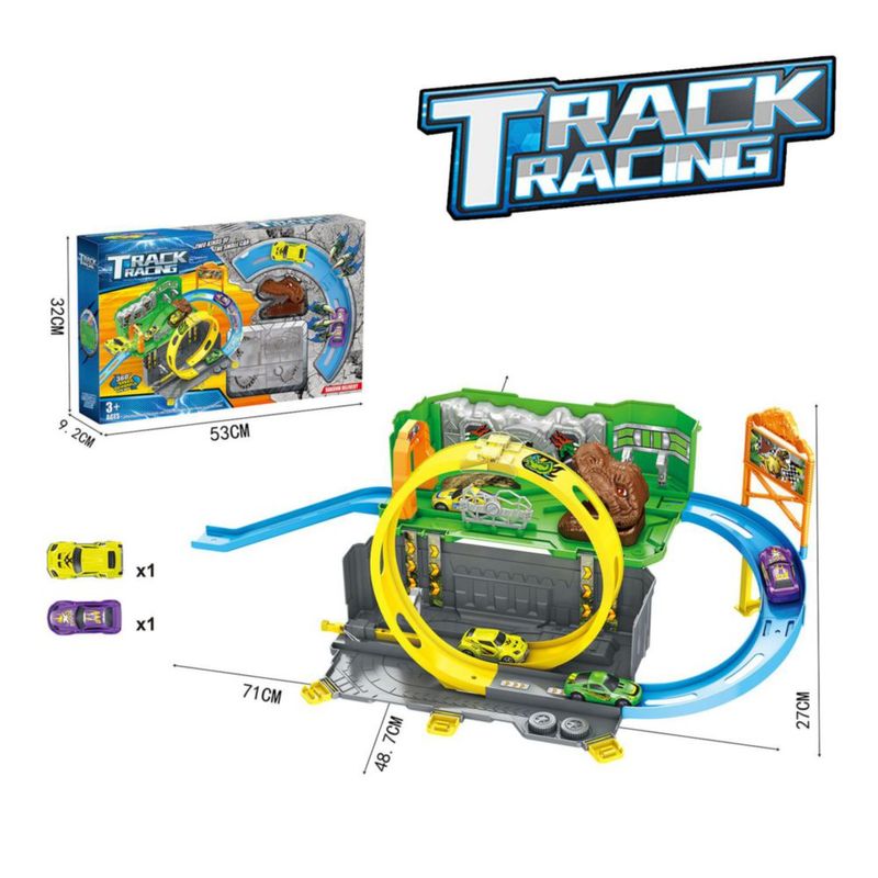 Pista de Juguete Infantil con Dinosaurio, Curvas Elevadas y Vehículos de Carreras