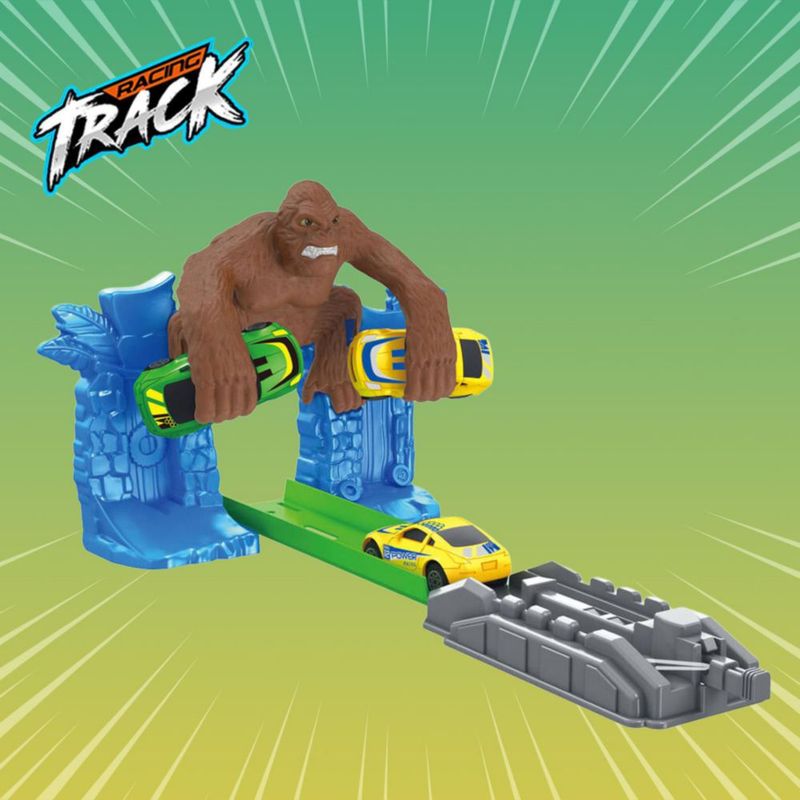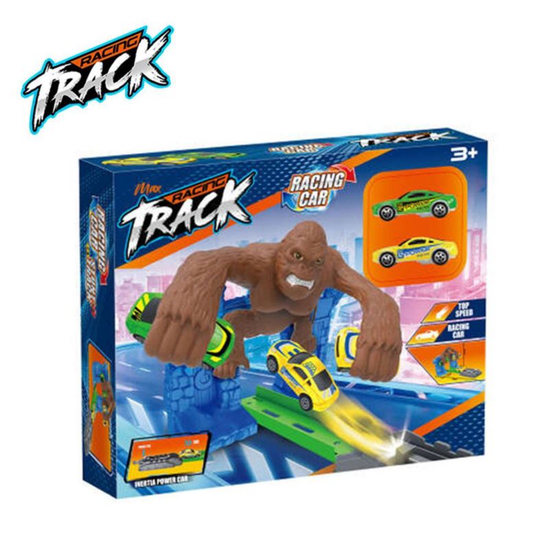 Pista de Juguete Infantil de Carreras con Obstáculo de Gorila y Vehículos de Juguete
