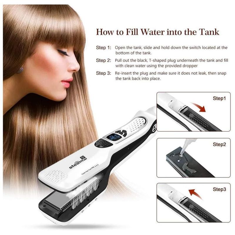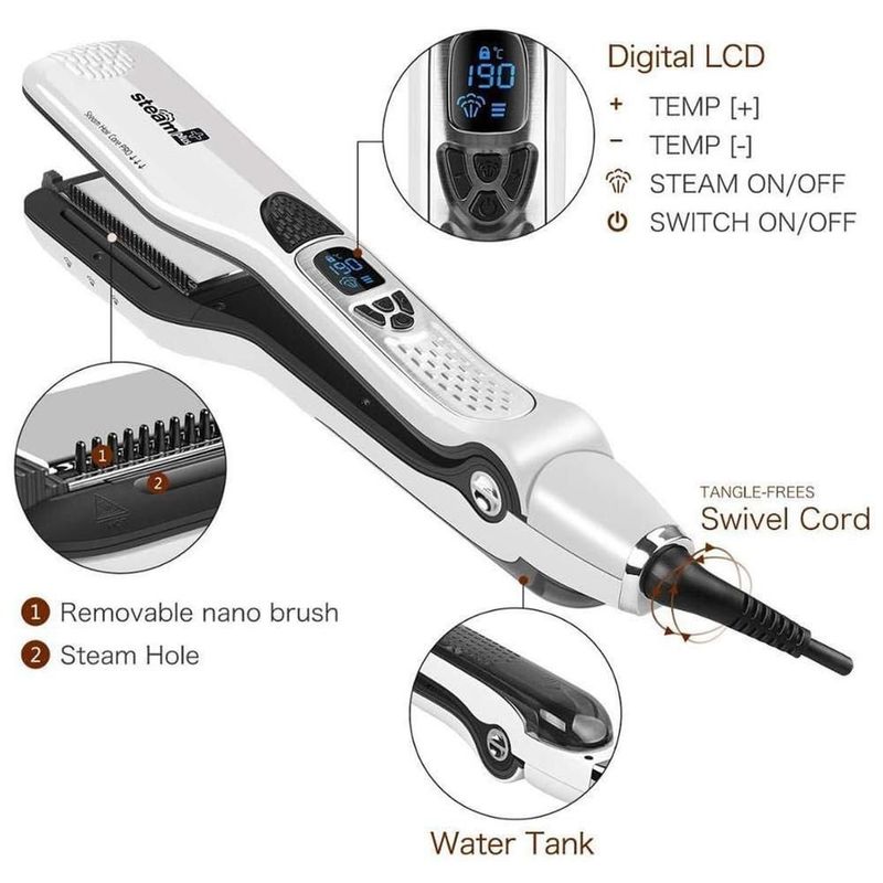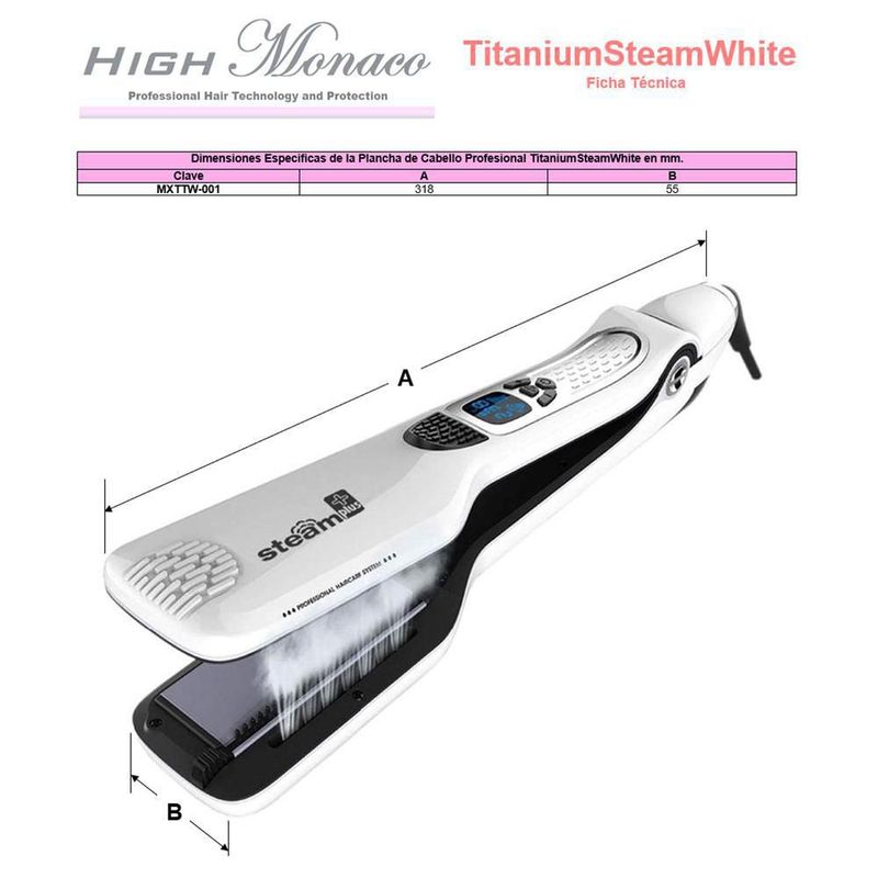 Plancha de Cabello de Vapor TitaniumSteamWhite MXTTW-008 Plancha con Placas de Ceramica
