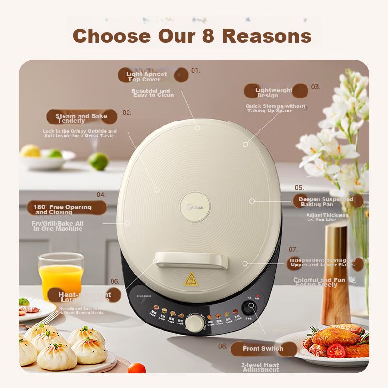 Plancha Eléctrica Midea 30J58 Doble Cara Grande Antibacteriana