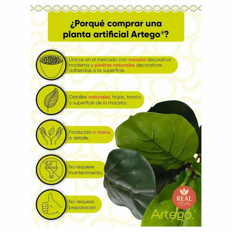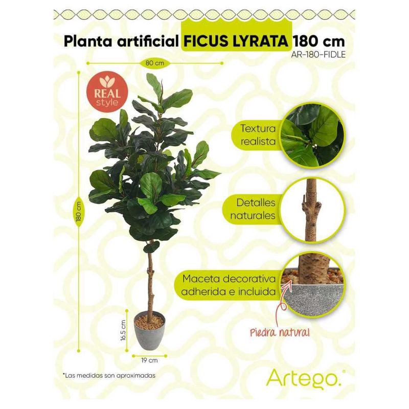 Planta artificial decorativa FIDLE maceta Ficus Lyrata 180cm de alto