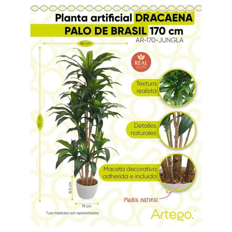 Planta artificial decorativa JUNGLA con maceta Dracaena 170cm de alto