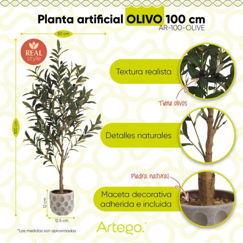 Planta artificial decorativa moderna con maceta Olivo de 100cm de alto Artego para hogar sala comercio oficina