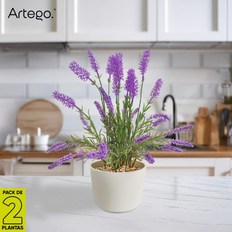 Planta artificial moderna con maceta decorativa Real Style Lavanda Compacta Pack de 2 unidades de 34cm de alto Artego