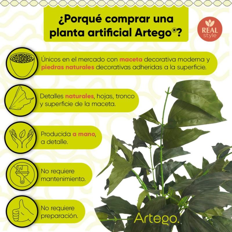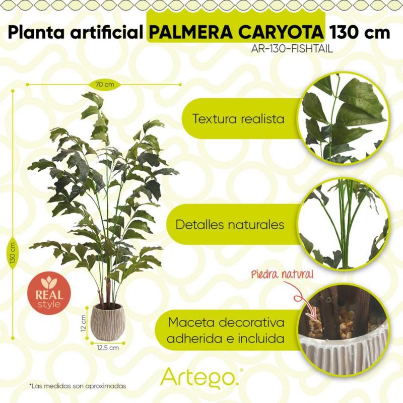 HogarDecoraciónMacetasPlanta artificial moderna con maceta decorativa Real Style Palmera caryota de 130cm de alto Artego para hogar sala comercio oficina
