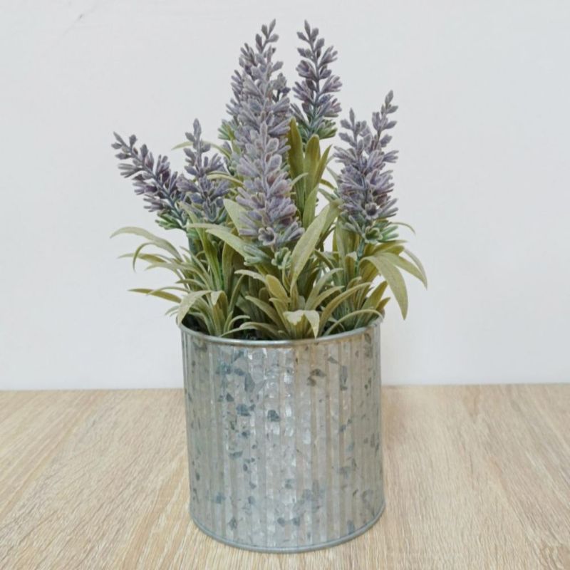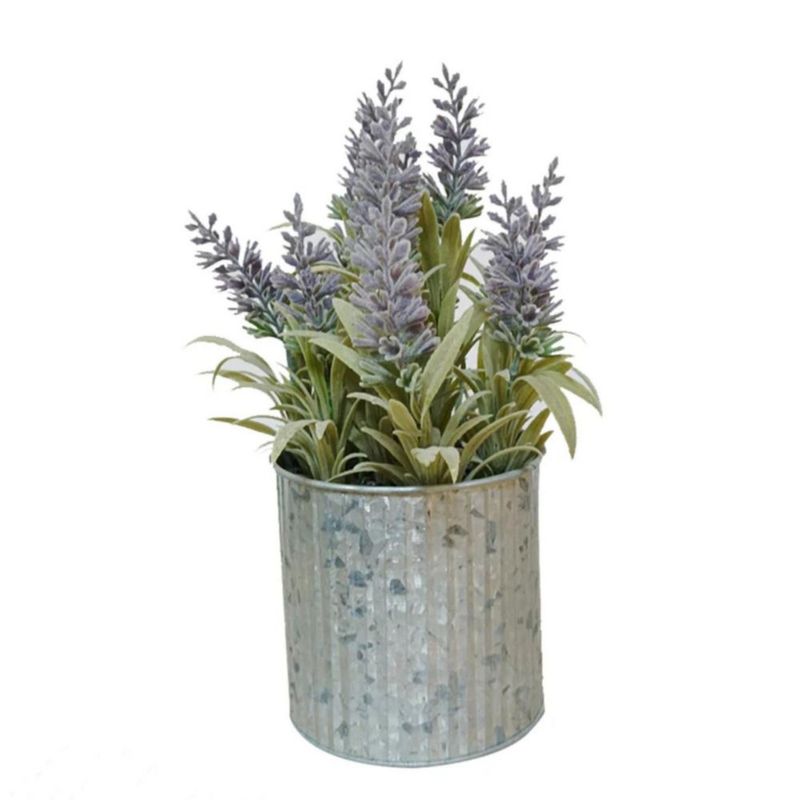 Planta Decorativa Lavanda de Color Lila con Maceta Metálica Gris