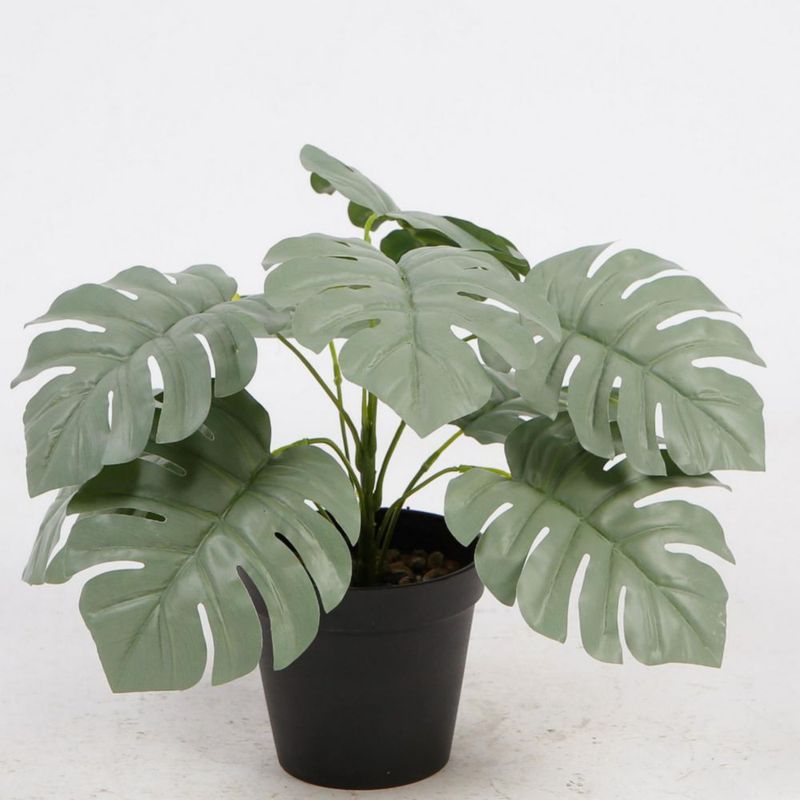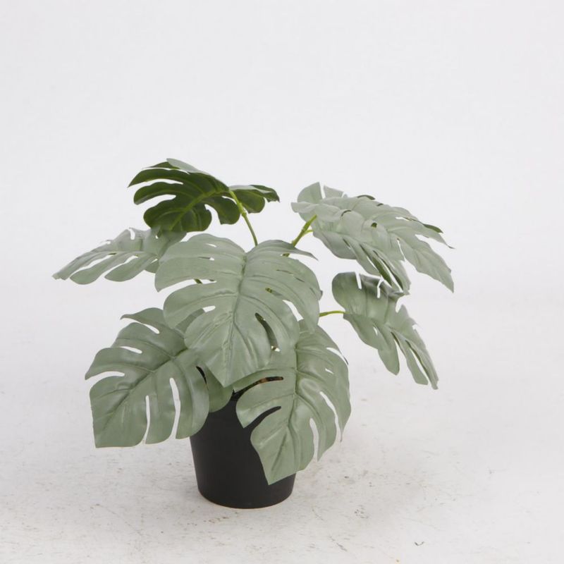 Planta Decorativa Monstera Verde y Blanco con Maceta Negra