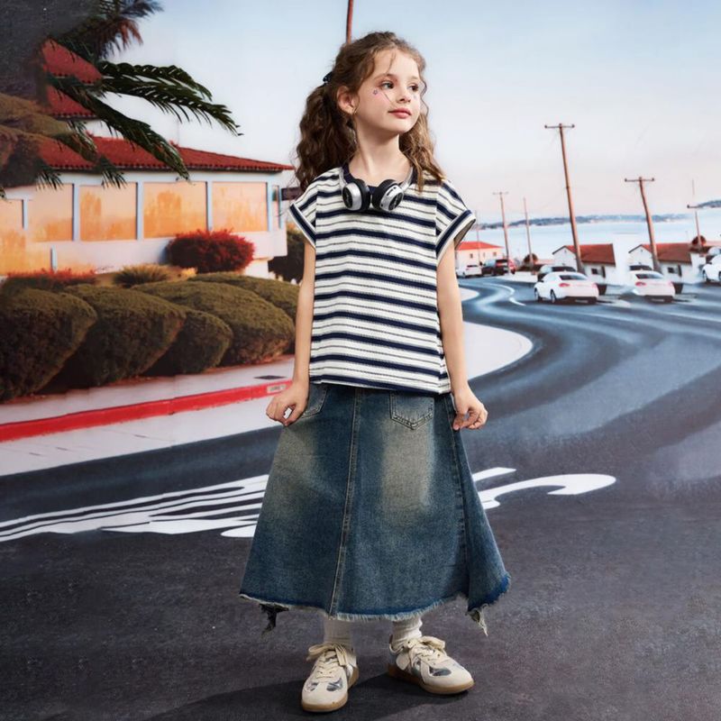 RopaRopa de NiñaPlayerasPlayera Ask Junior A Rayas Azul Para Niña