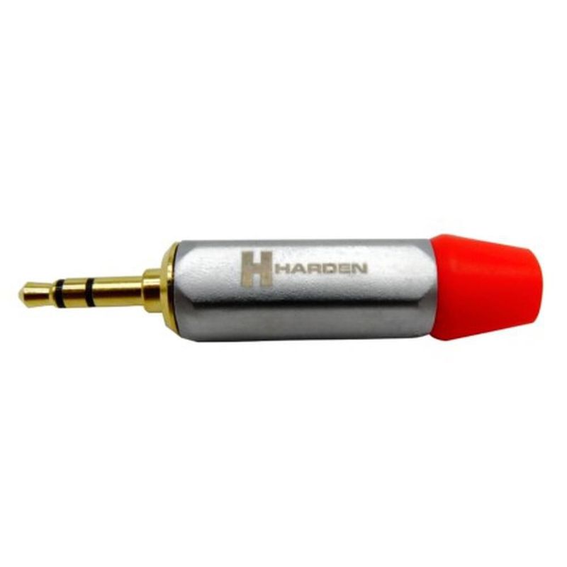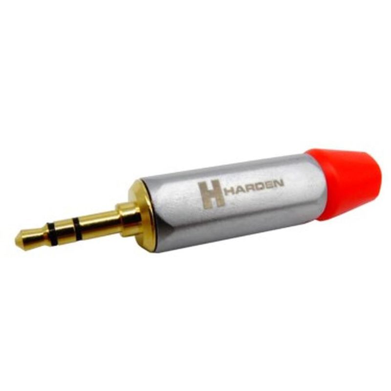Plug macho de 3.5 mm estéreo, dorado metálico color plata con código naranja