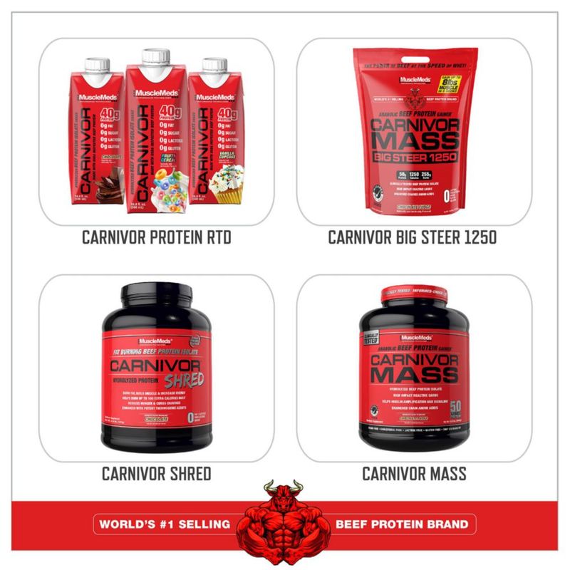 DeportesNutrición y Medicina DeportivaProteínasPonche proteico en polvo MuscleMeds Carnivor Beef Fruit Punch 18 kg