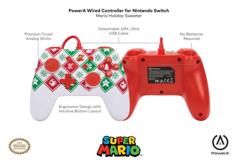 PowerA Control Alámbrico para Nintendo Switch - Mario Holiday Sweater - Standard Edition