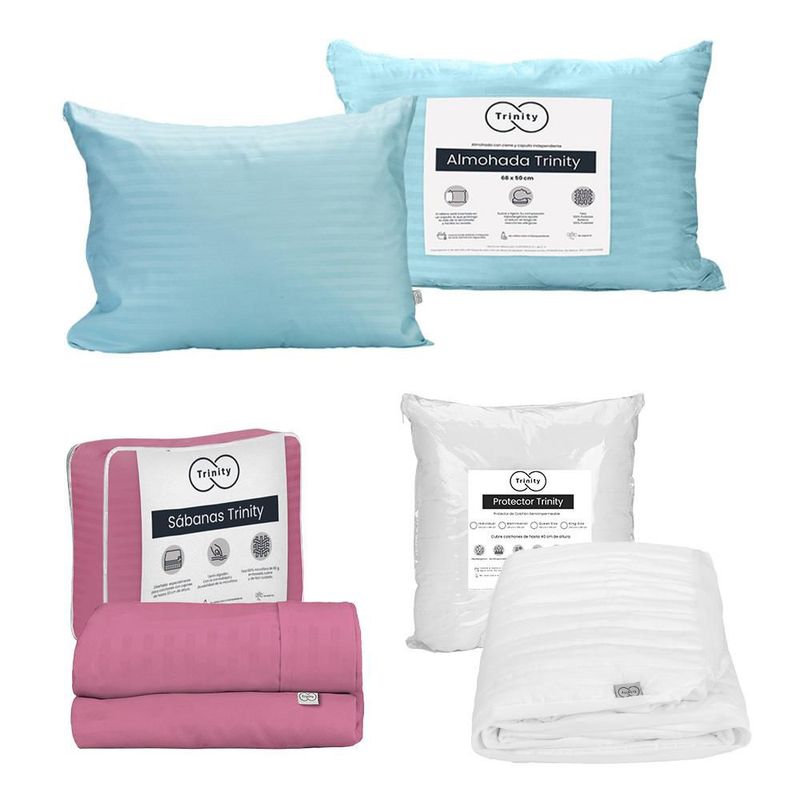 Protector de colchón Individual Trinity + Sábanas Trinity + Almohada Trinity TRY
