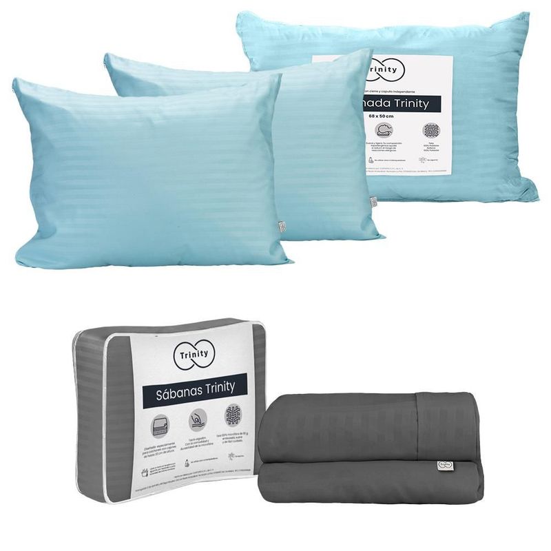 Protector de colchón King Size Trinity + Sábanas Trinity + 2 Almohadas Trinity TRY