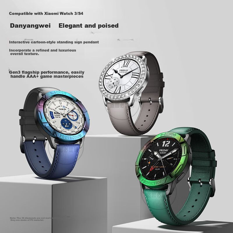 TelefoníaWearablesAccesorios para SmartwatchProtector De Pantalla Chensong Para Xiaomi Watch S3/S4 Bisel Y Pulsera Cuero Negro-Verde