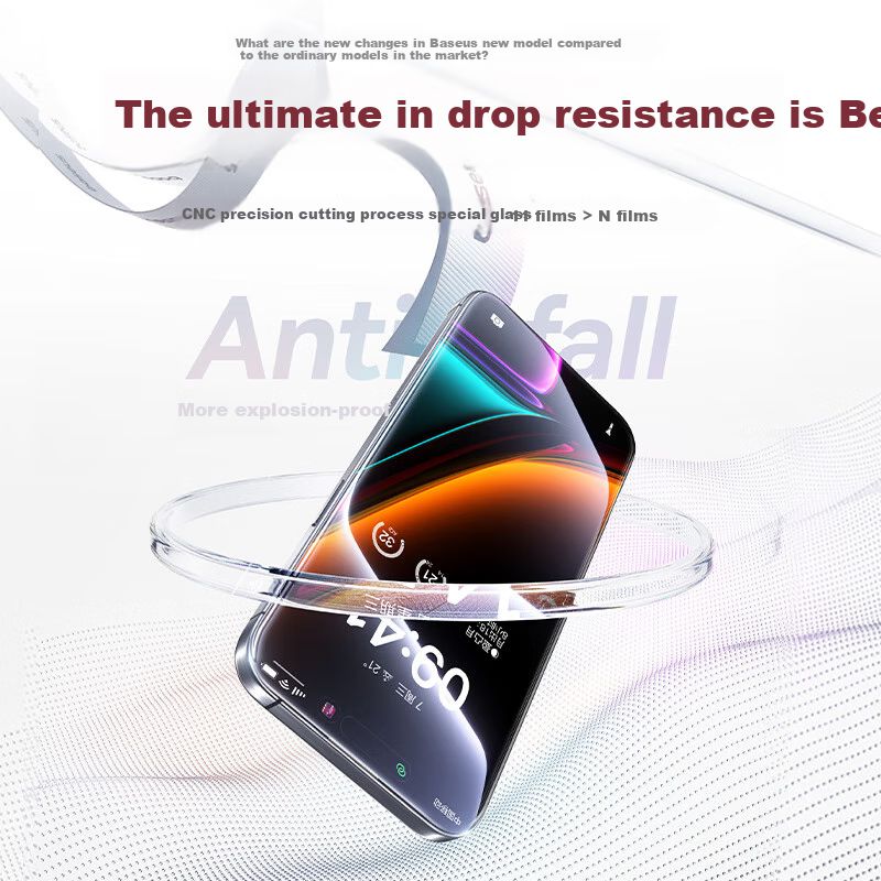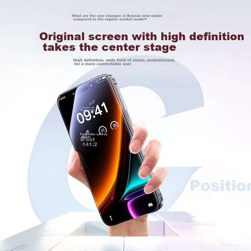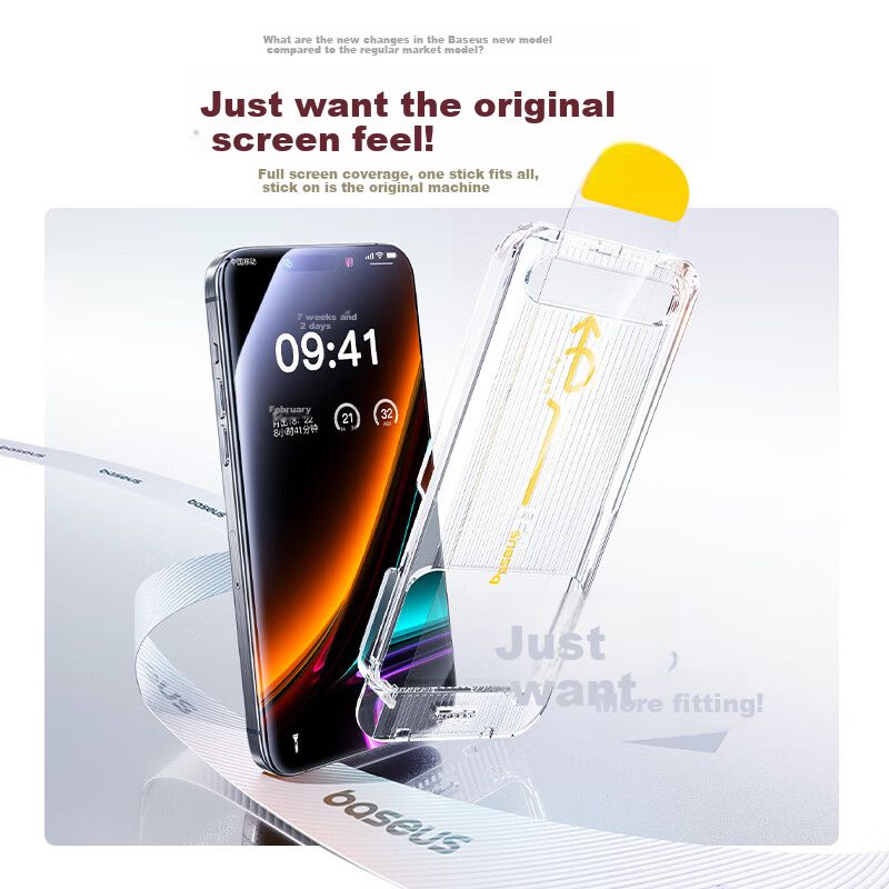 Protector de Pantalla Cristal Templado Baseus para iPhone 16 Pro Protección Luz Azul Cobertura Total Antihuellas Paquete 2 Piezas