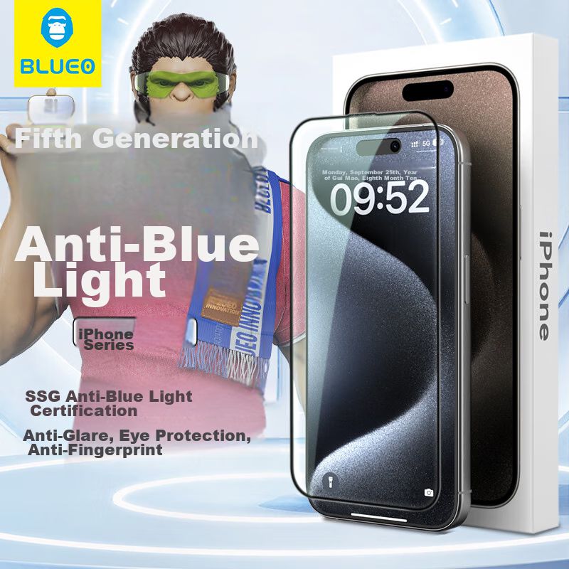 Protector de Pantalla Cristal Templado Filtro Luz Azul BLUEO para iPhone 15 Plus/14 Pro Max