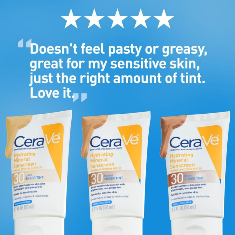 Belleza y Cuidado PersonalCuidado de la pielProtección SolarProtector solar mineral hidratante CeraVe SPF 30 con tinte transparente protector solar mineral tintado con óxido de zinc y dióxido de titanio se