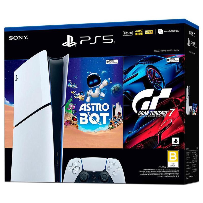PS5 Slim Edición Digital 825GB, Incluye Videojuegos Gran Turismo y Astro Bot
